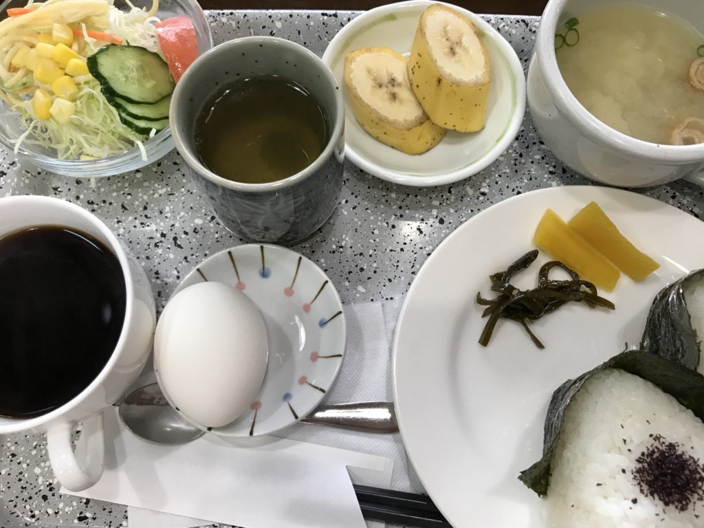 お味噌汁、ゆで卵、サラダ、バナナはトーストモーニングと同じです。